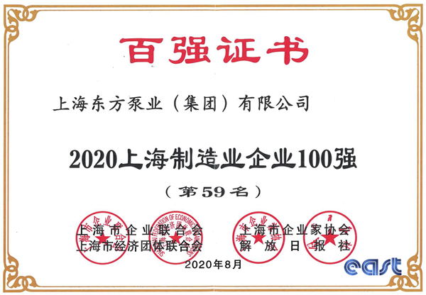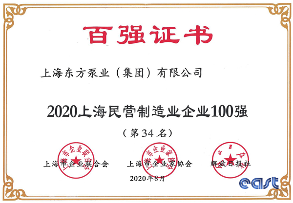 上海東方泵業(yè)(集團(tuán))有限公司憑借出色的銷售業(yè)績(jī)和良好的社會(huì)口碑,通過(guò)專家委員會(huì)的審定,分別榮獲《2020上海制造業(yè)企業(yè)100強(qiáng)》第59名、《2020年上海民營(yíng)制造業(yè)企業(yè)100強(qiáng)》第34名。東方泵業(yè)入圍百?gòu)?qiáng)榜單,是對(duì)東方泵業(yè)經(jīng)營(yíng)發(fā)展的肯定。未來(lái),東方泵業(yè)將繼續(xù)強(qiáng)化使命與擔(dān)當(dāng),充分響應(yīng)國(guó)家號(hào)召,逆勢(shì)而上,穩(wěn)中發(fā)展,秉承“誠(chéng)信、創(chuàng)新、務(wù)實(shí)、共贏”的經(jīng)營(yíng)理念,堅(jiān)持客戶至上、精益求精的品質(zhì)方針;通過(guò)良好的產(chǎn)品和服務(wù),保障用戶生產(chǎn)、生活,促進(jìn)經(jīng)濟(jì)增長(zhǎng),提升人民福祉。為后疫情時(shí)代經(jīng)濟(jì)持續(xù)健康發(fā)展做出貢獻(xiàn),再創(chuàng)佳績(jī)。