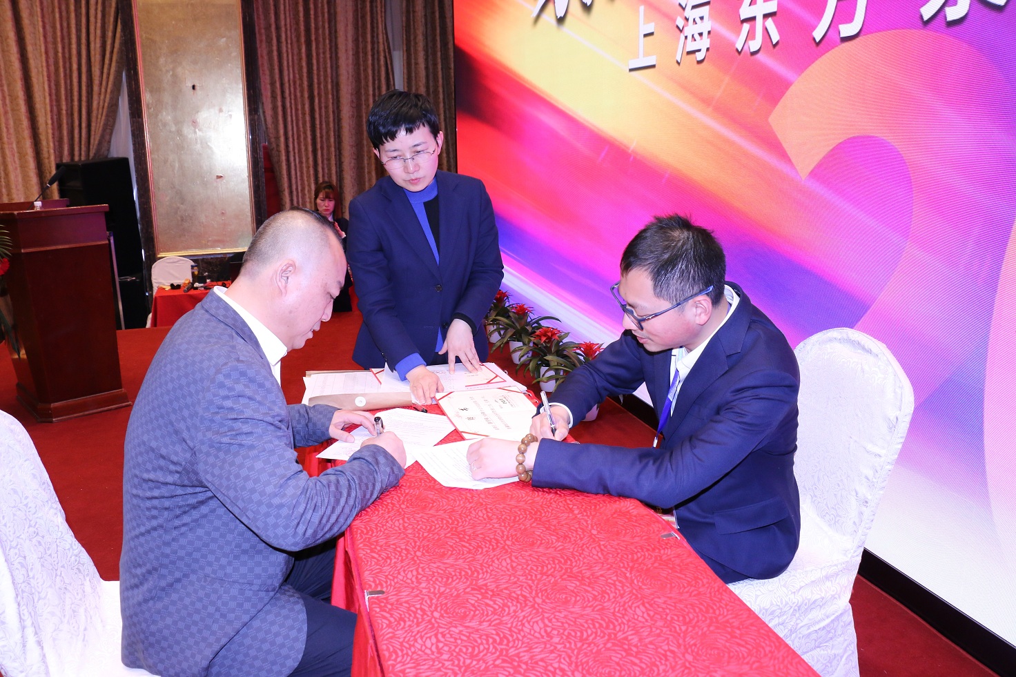 接下來是駐外責任書簽訂儀式。吳總裁和袁總裁分別代表集團公司與各位分公司總經理和副總經理現場簽訂了2025年度的工作責任書。簽訂儀式氣氛莊重、熱烈,責任書載明了駐外營銷團隊管理者的工作內容,也承載了全體營銷同仁的職責和使命,總部領導簽下的是來自集團的授權和希望,分公司高管簽下的是駐外東方人的承諾和擔當!展望2025年,東方全體駐外營銷同仁準備好了,手中的責任書就是出發的宣言和號角!