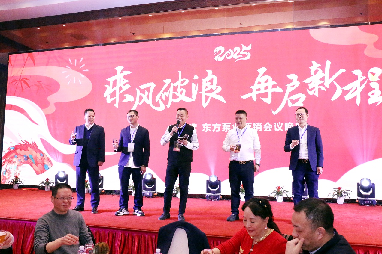 會議的最后是輕松、歡快的晚宴、抽獎環節。集團領導上臺祝酒,吳董發表了熱情洋溢的祝酒詞;現場同仁共同舉杯,共祝東方的美好明天!演藝團隊帶來了精彩的助興表演,為晚會添彩;特別是為東方泵業特別訂制的傳統非遺節目口技模仿秀《東方泵業的春天》,博得了現場同仁的熱烈掌聲。